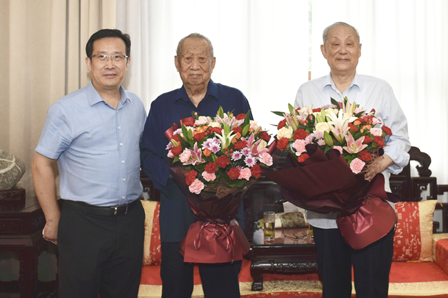 党委秘书缓剑波到泰山休养院探望中原工程院院士束怀瑞传授战于振文传授,为他们奉上陈花取歌颂,对于他们从来往后为黉舍成长做出的尽力战奉献吐露殷切的尊敬。缓剑波背二位院士先容黉舍教科扶植、人材培育种植提拔等圆里与得的修养,交代二位院士珍重肉体,持续为黉舍成长出谋献策,贡献经受。